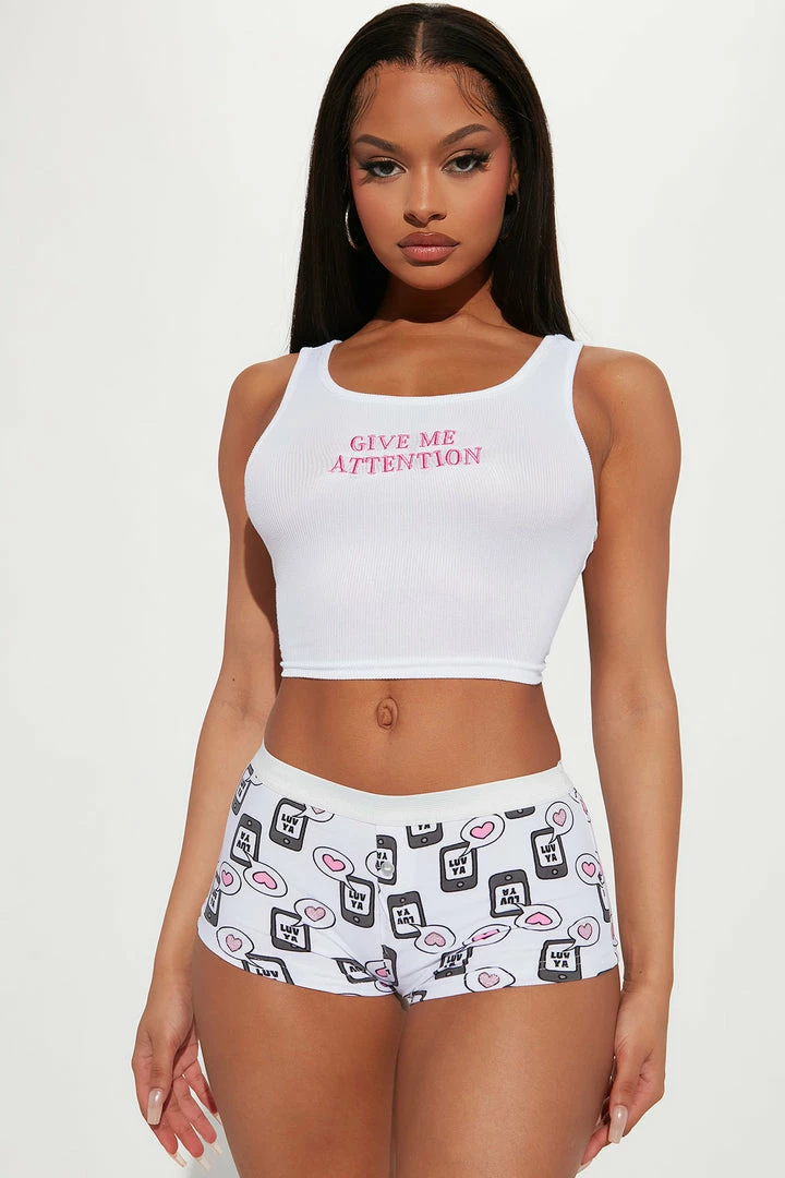 Be the first to review “Outlet โค๏ธ Fashion Nova Give Me Attention PJ Boyshort Set – White/combo Pajama Sets ๐คฉ” Cancel reply